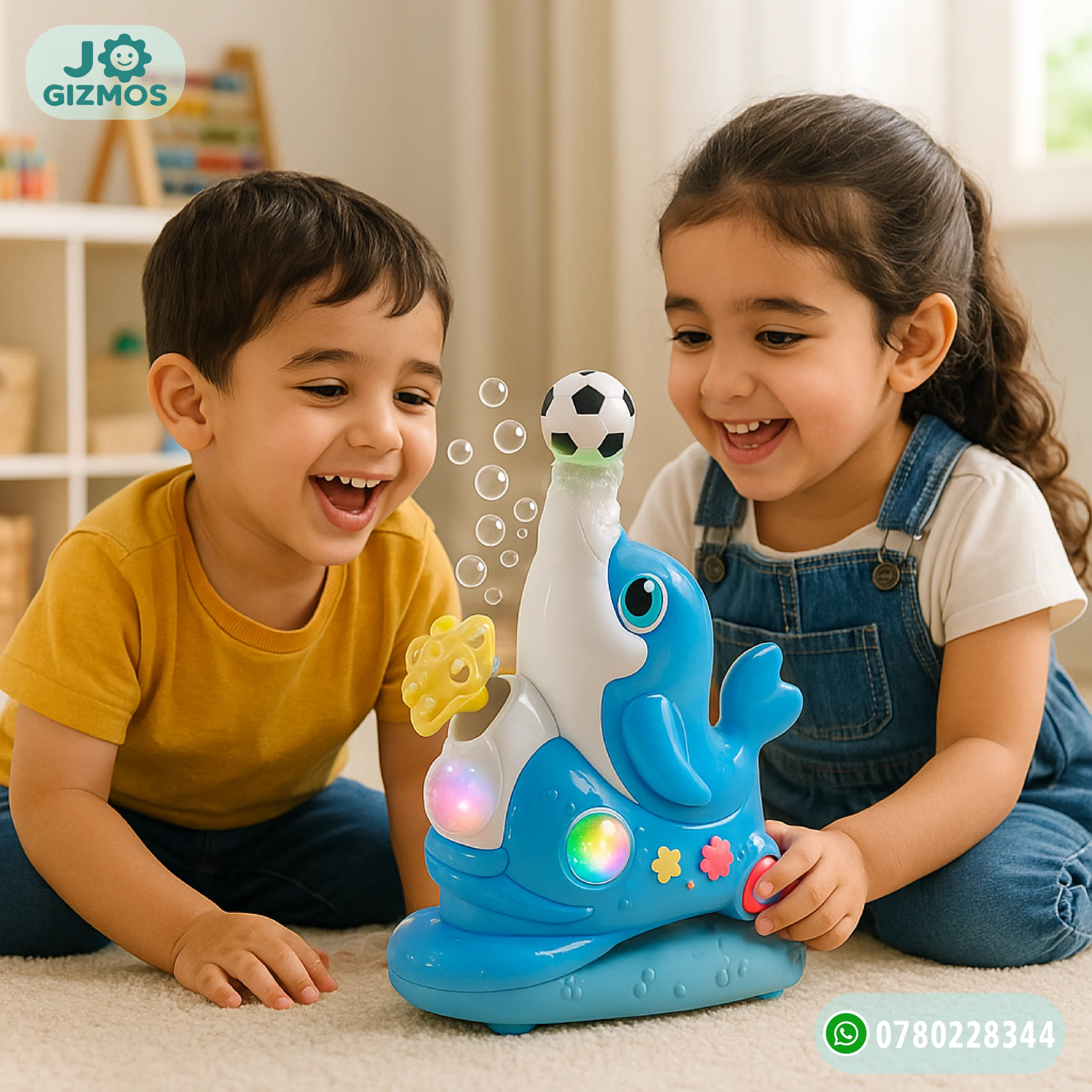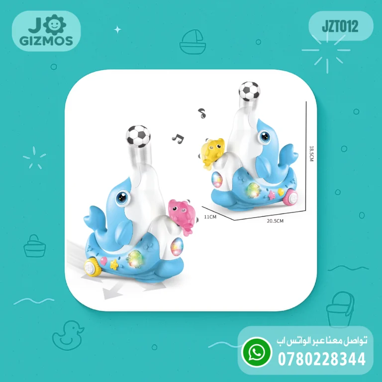 🎲 لعبة ممتعة وتفاعلية على شكل دولفين، تطلق موسيقى وتتحرك، بينما تطير كرة صغيرة فوق فوهته باستخدام الهواء. تشجع على التركيز والتفاعل البصري للأطفال، وتضفي جواً من الفرح والحماس.