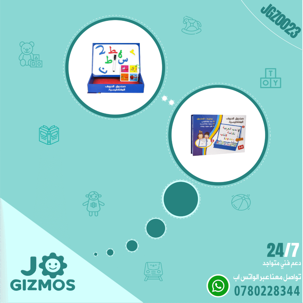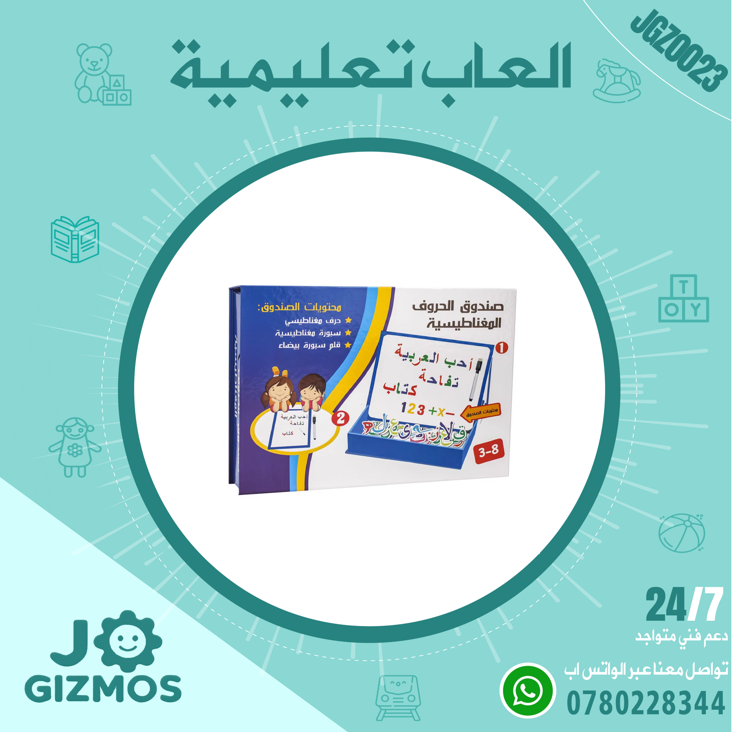 🎲 هي لعبة تعليمية تهدف إلى مساعدة الأطفال في تعلم الحروف الهجائية العربية وتكوين الكلمات بطريقة ممتعة وتفاعلية باستخدام الحروف المغناطيسية. يمكن استخدام الحروف على أي سطح مغناطيسي، كما يمكن استخدام القلم للكتابة والممارسة.