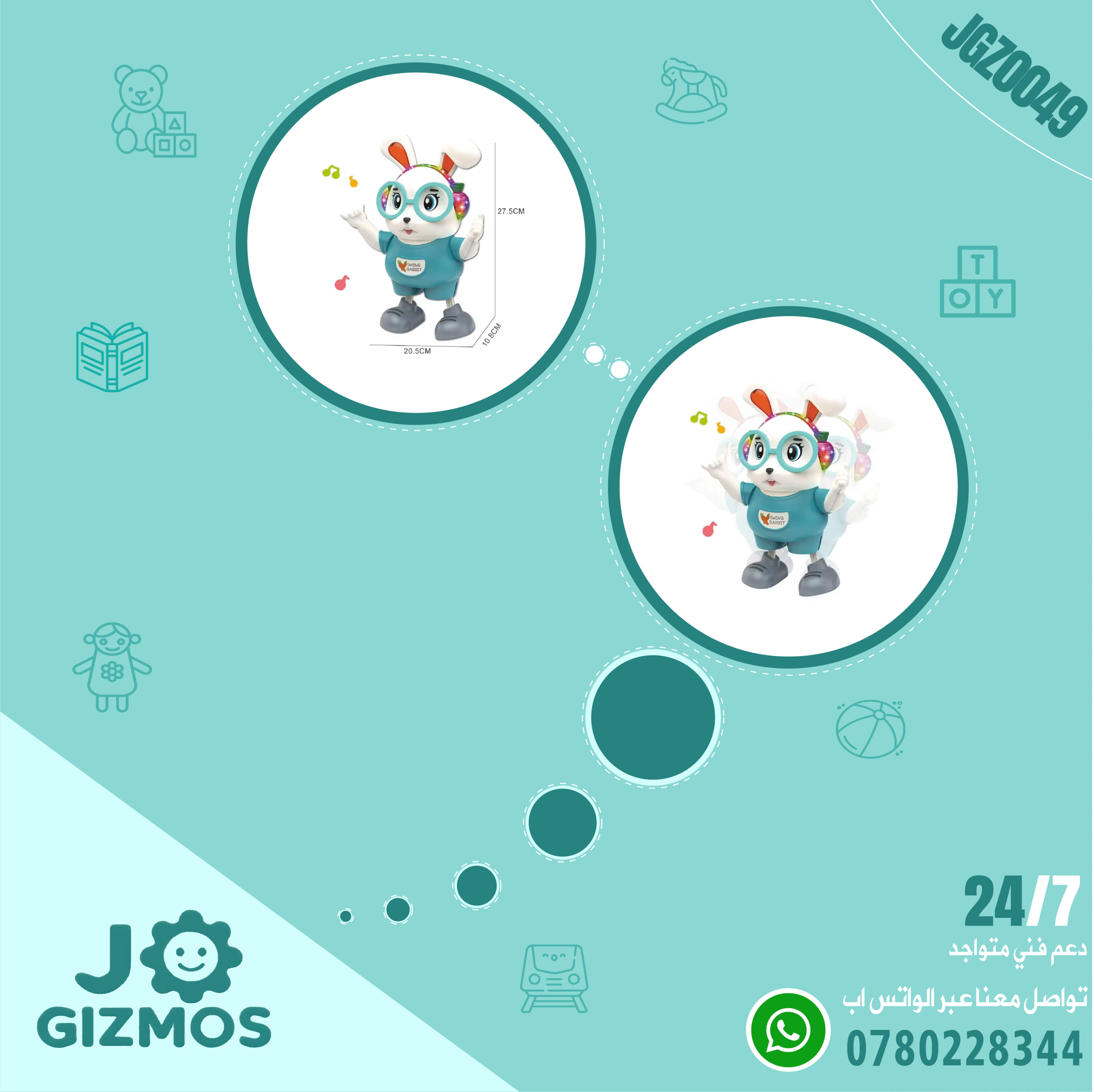 🎲 هي لعبة على شكل أرنب يقوم بالرقص. تشير العلبة إلى أن اللعبة مزودة بأضواء وموسيقى وأضواء ملونة جذابة.
