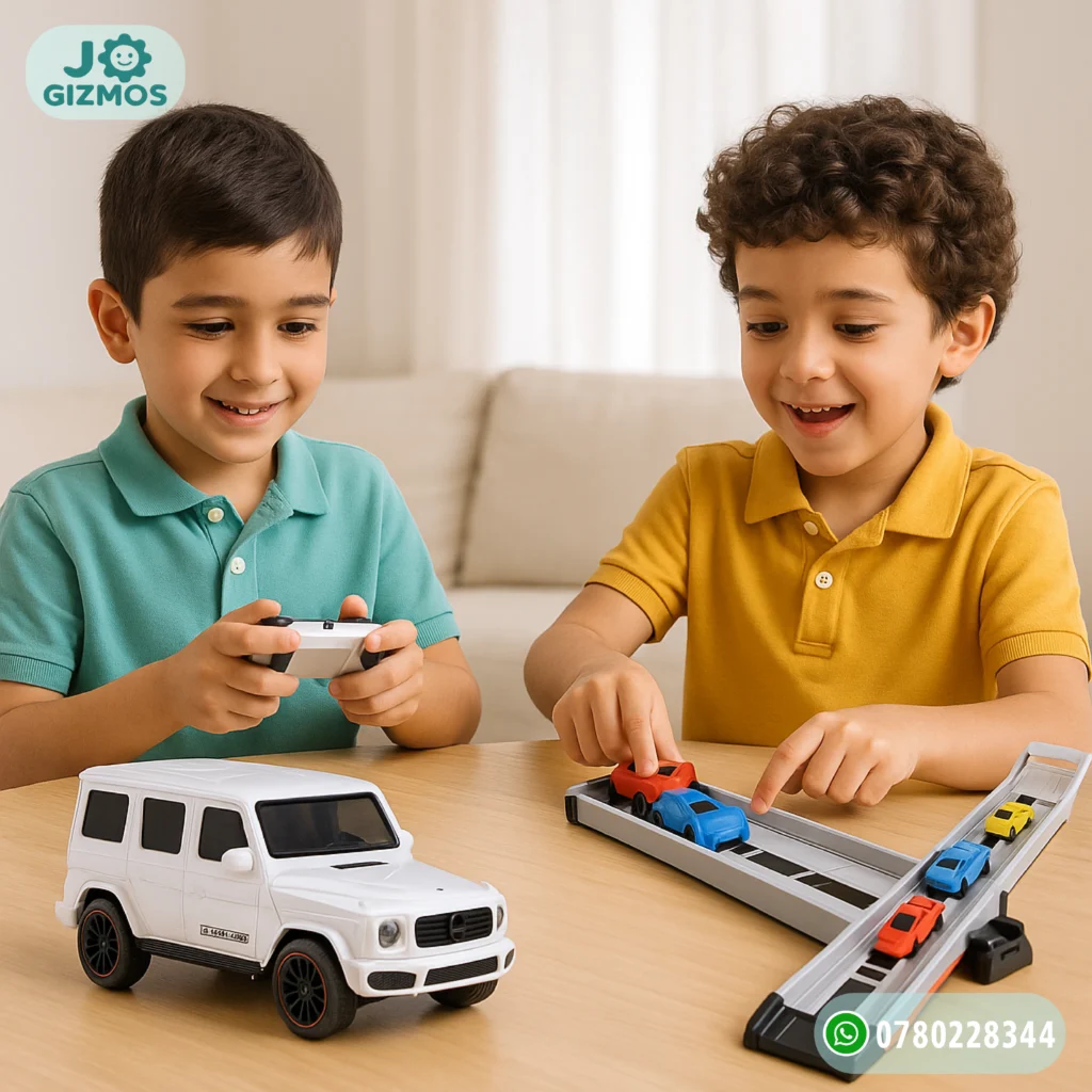 🎲 لعبة تجمع بين قيادة السيارة الكبيرة بالتحكم عن بعد، وتجربة ممتعة من إطلاق السيارات الصغيرة على مسار مائل بسرعات عالية. مناسبة للتنافس بين الأطفال وتنمية مهارات التنسيق والدقة.