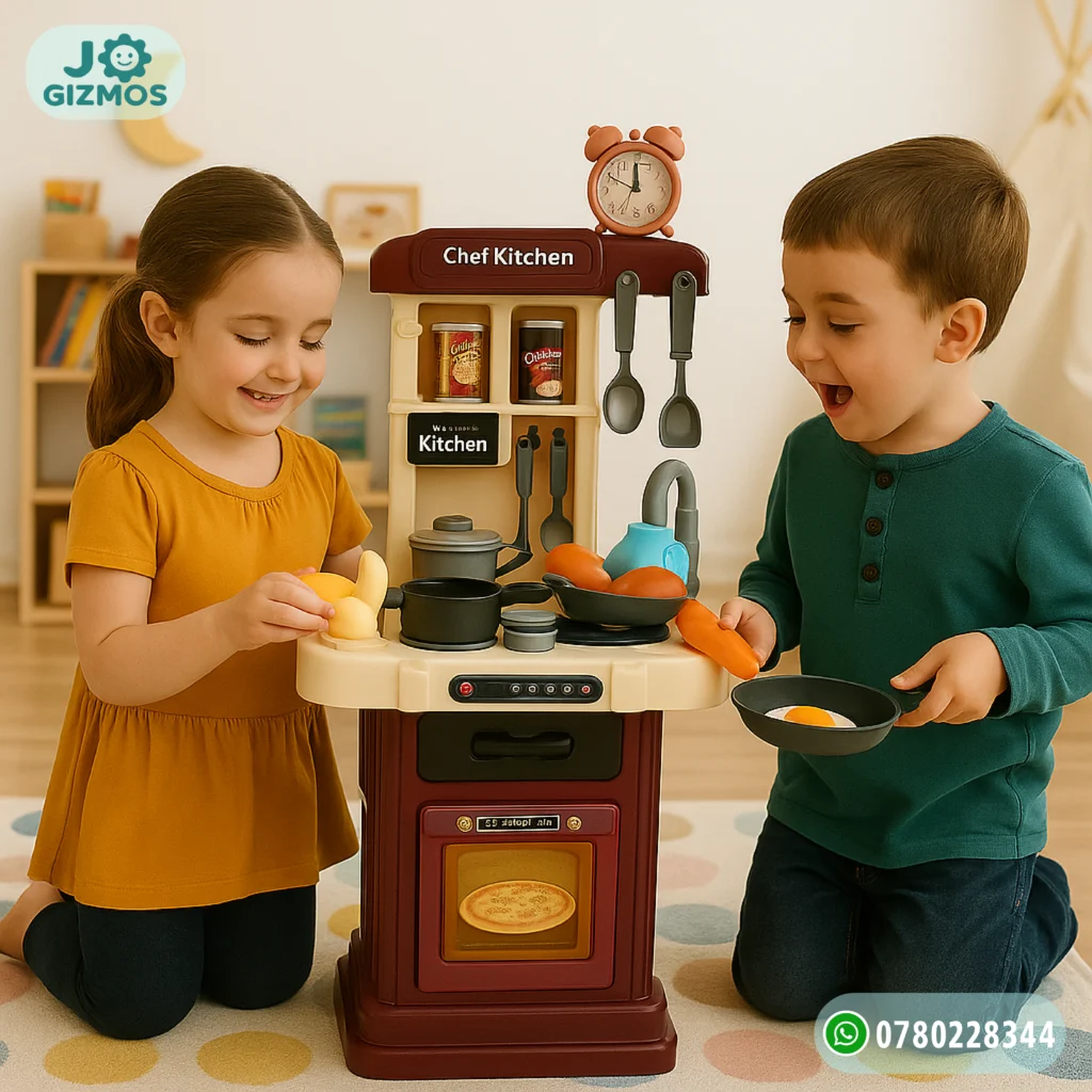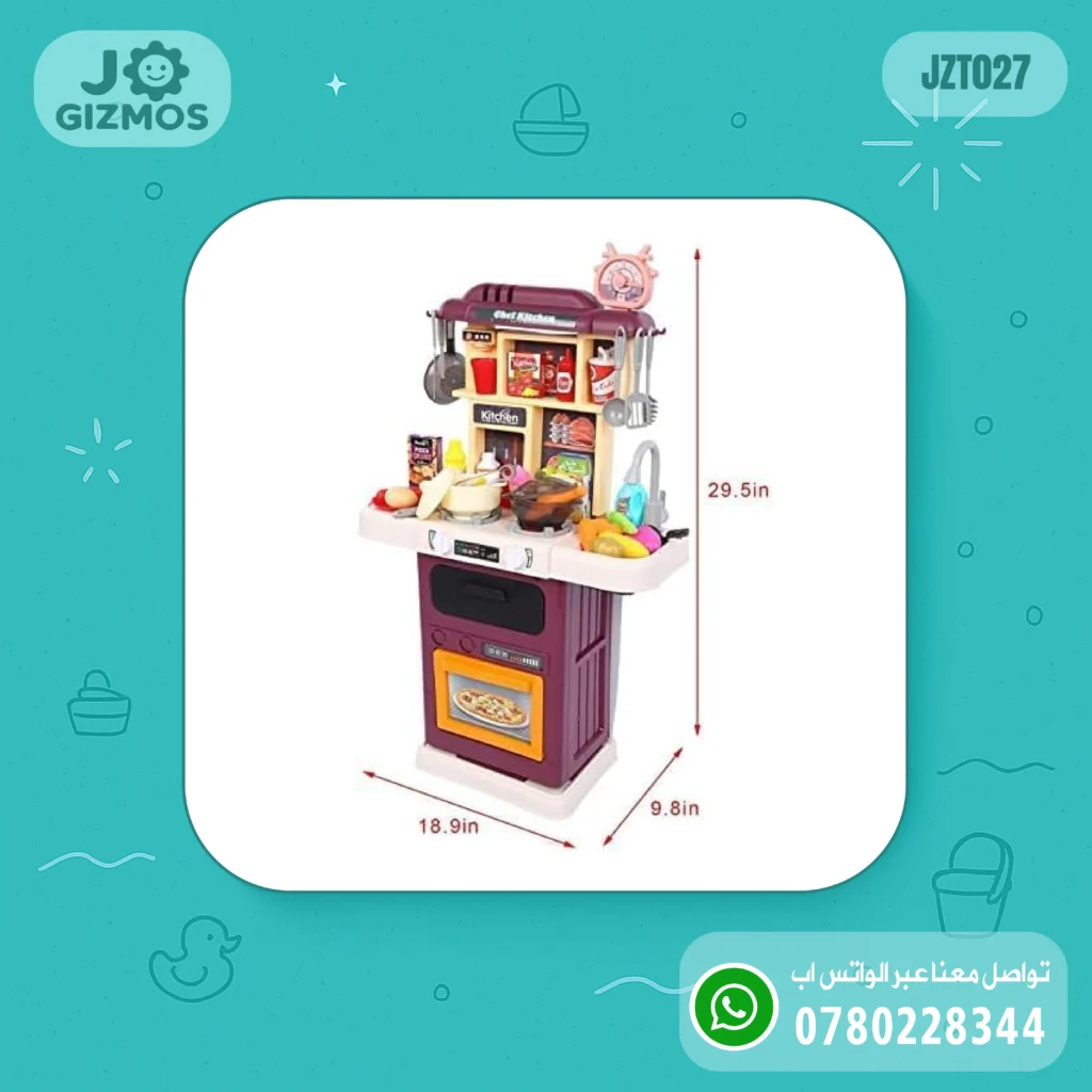 👩🍳 مطبخ ألعاب تفاعلي يحاكي تجربة الطبخ الحقيقية للأطفال. يتميز بتأثيرات مائية وبخارية تضيف الواقعية والمتعة. يحتوي على العديد من الأطعمة والأدوات التي تشجّع الأطفال على اللعب التخيلي وتطوير المهارات الحركية والتواصل الاجتماعي.